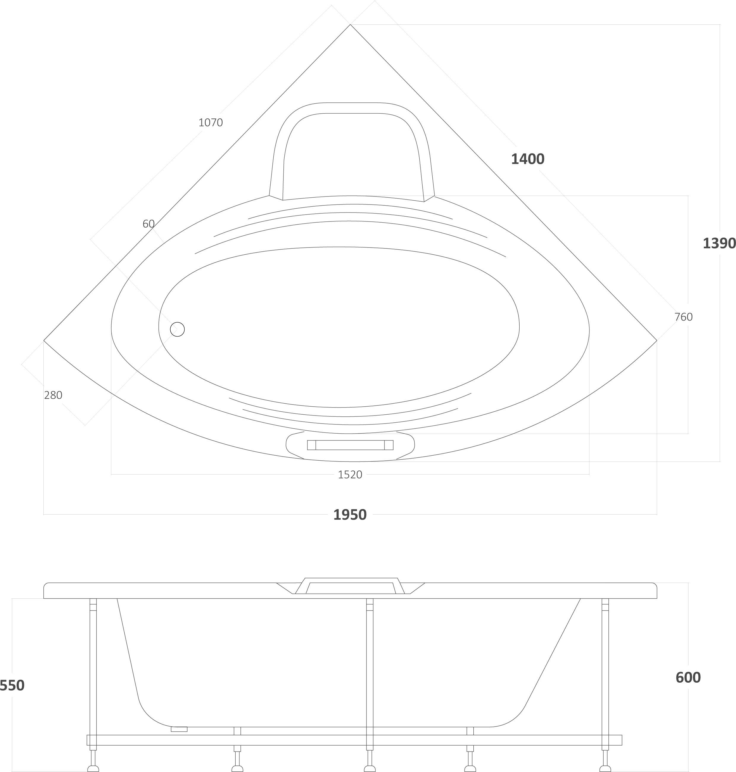 Γωνιακή Μπανιέρα 533 Marina 140x140x60