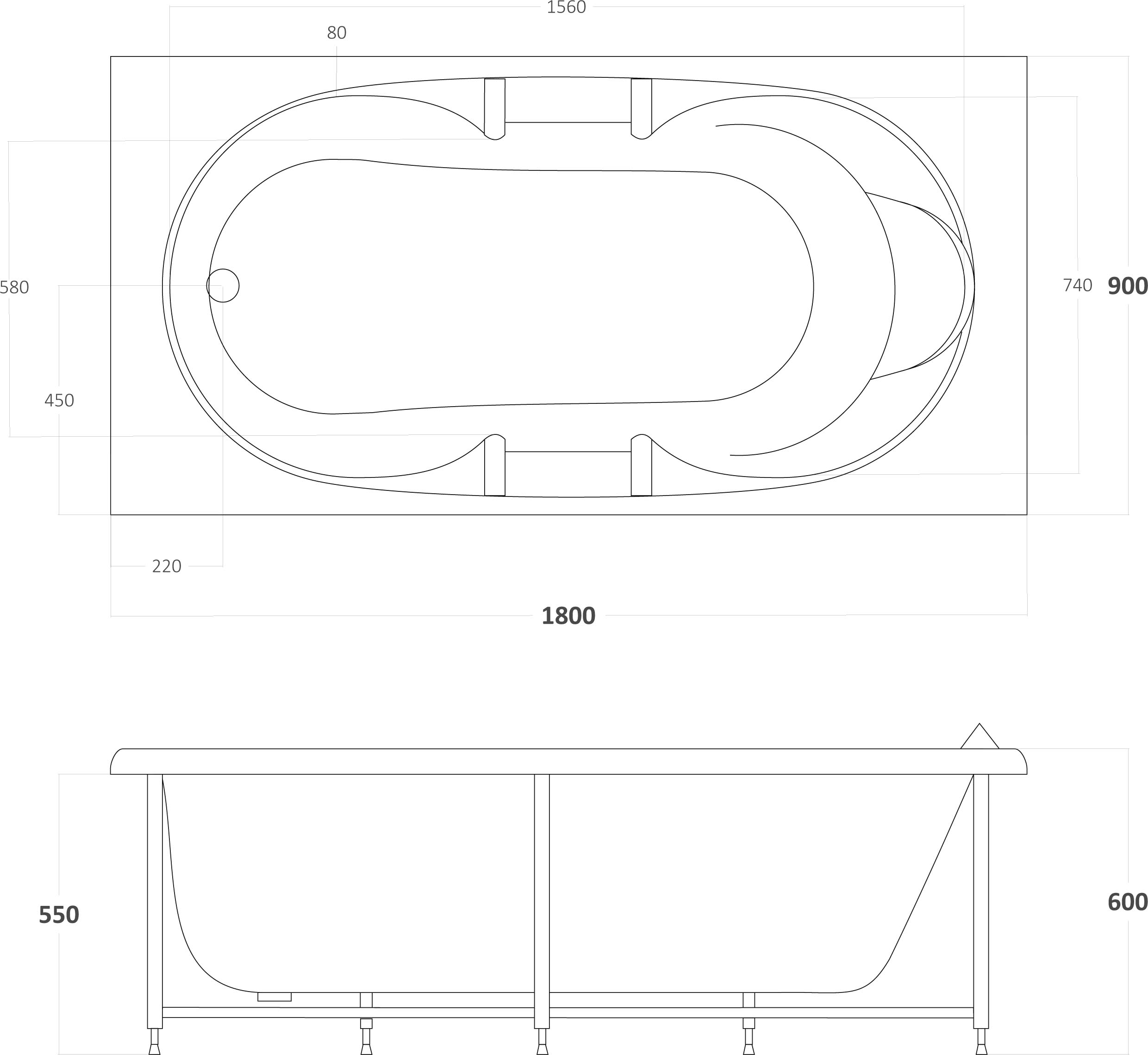 Ευθύγραμμη Μπανιέρα 515 Cathrine 180×90