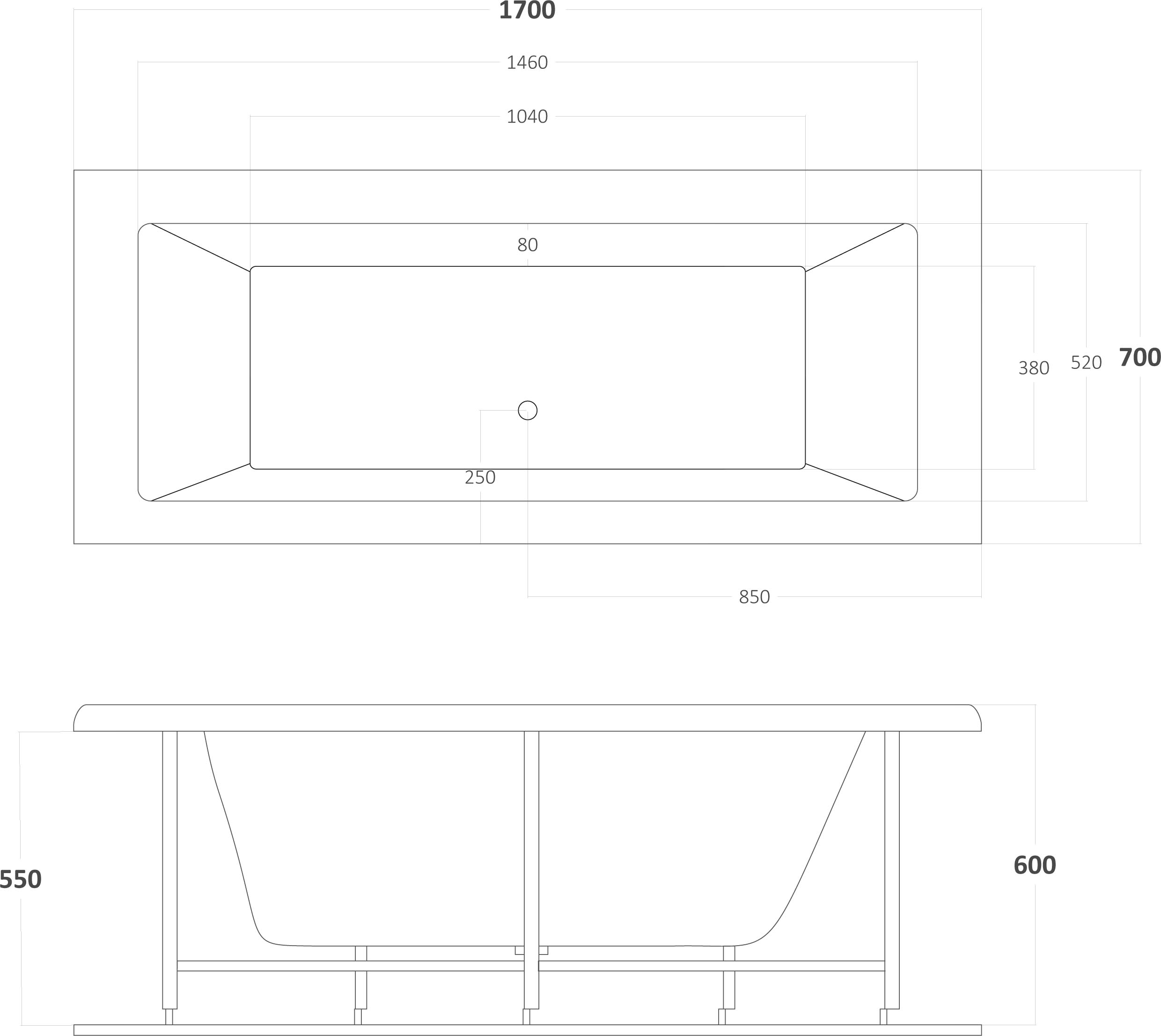 Ευθύγραμμη Μπανιέρα 533 Quadra 170×70