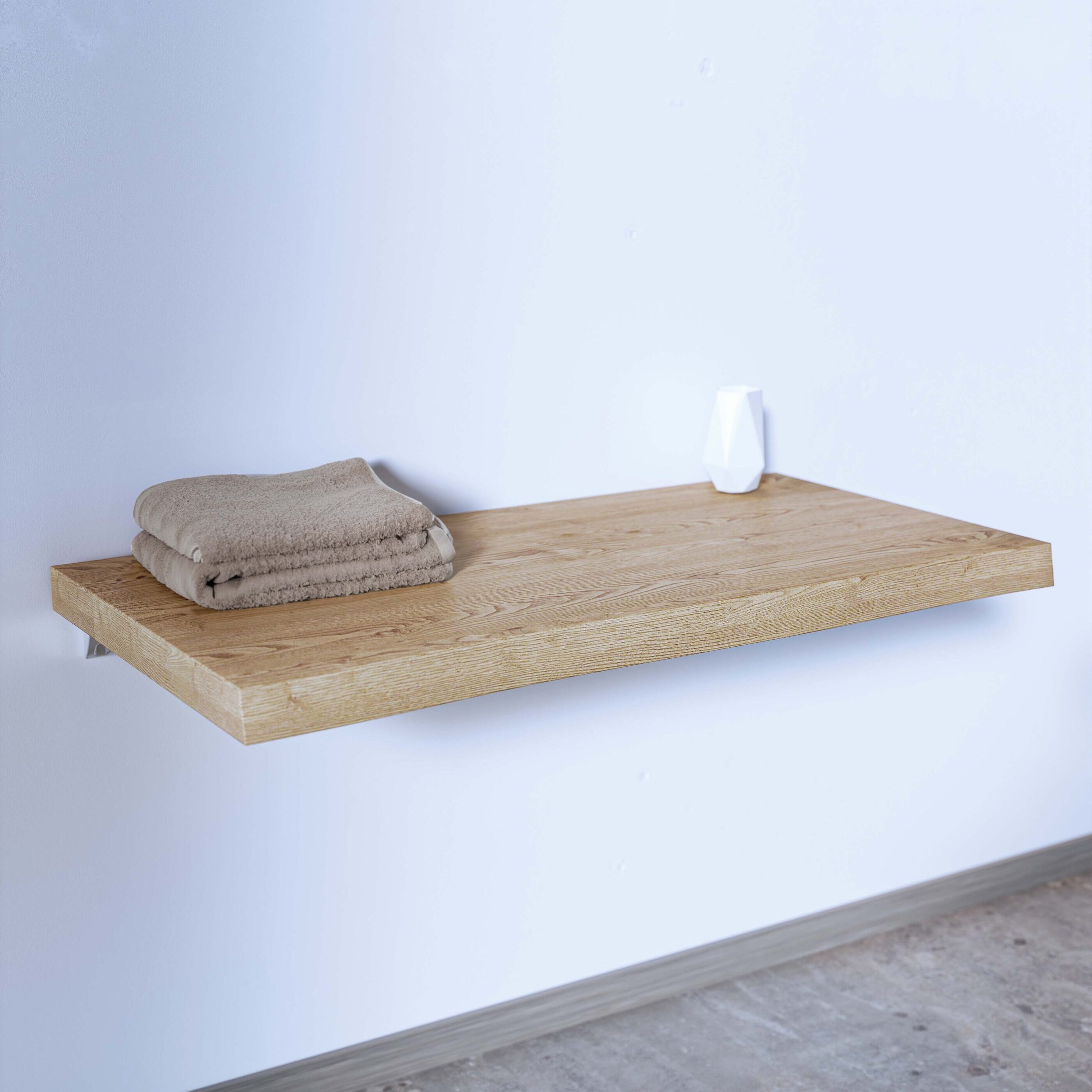 Ράφι μπάνιου από μασίφ ξύλο δρυς, ιδανικό για τοποθέτηση επιτραπέζιου νιπτήρα και δημιουργία ενός κομψού και φυσικού χώρου. Με μήκος από 81 έως 100 εκ., πλάτος 50 εκ. και πάχος 4 εκ., προσφέρει αντοχή και σταθερότητα στην καθημερινή χρήση. Η κατασκευή από φυσική δρυ εξασφαλίζει μεγάλη διάρκεια ζωής και υψηλή αισθητική.